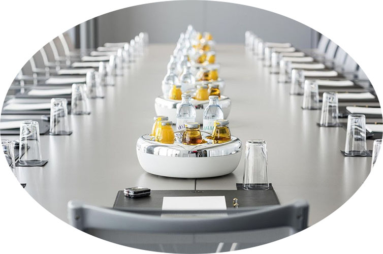 Ένα άνετο τραπέζι συναντήσεων, αναπαυτικές καρέκλες, περιποιημένα σερβίτσια με κομψό σχεδιασμό καθώς και κάποιες κανάτες οι οποίες θα κρατήσουν κρύα ή… ζεστά αναλόγως της εποχής τα ροφήματα σας είναι μόνο μερικές από τις λεπτομέρειες οι οποίες θα κάνουν την διαφορά και θα αυξήσουν κατακόρυφα την αποδοτικότητα των εργαζομένων.
