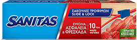 Οι Σακούλες Sanitas Slide & Lock έχουν εξαιρετικά μεγάλο πάχος και αντοχή, αλλά και κλείνουν πανεύκολα χάρη στο αεροστεγές σύστημα Slide & Lock. Οι σακούλες είναι ιδανικές για την φύλαξη ευπαθών τροφίμων και οποιονδήποτε αντικειμένων θέλετε να προφυλάξετε από μικρόβια.