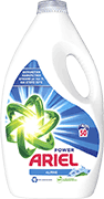 Υγρό απορρυπαντικό ρούχων Ariel Alpine. Αφαιρεί τους σκληρούς λεκέδες και τις δυσάρεστες οσμές, ακόμη και σε χαμηλές θερμοκρασίες και σύντομες πλύσεις. Η σύνθεσή του σχεδιάστηκε ειδικά για κρύες και σύντομες πλύσεις (*στους 30 °C και σε πλύσεις 45 λεπτών).