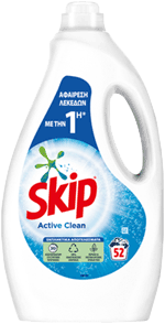 Το Skip Active Clean αντιμετωπίζει τους δύσκολους λεκέδες από την πρώτη κιόλας πλύση, χαρίζοντας στα ρούχα σας ασύγκριτη καθαριότητα. Είναι ιδανικό και χρωματιστά ρούχα καθώς δεν περιέχει λευκαντικούς παράγοντες στην σύνθεσή του ενώ αφαιρεί καθημερινούς λεκέδες καθώς διαλύεται πιο εύκολα στην πλύση διεισδύοντας γρηγορότερα στην καρδιά του λεκέ.