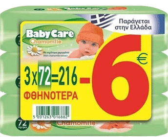 Baby Care μωρομάντηλα χαμομήλι 3χ72τμχ