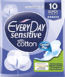 Οι Σερβιέτες Everyday Sensitive Super Ultra Plus είναι σερβιέτες μεγάλου μήκους λεπτές σερβιέτες, με φτερά προστασίας και υγιεινό υφασμάτινο κάλυμμα που περιέχει βαμβάκι και επιτρέπει στο δέρμα να αναπνέει. Η επαναστατική τεχνολογία Center Plus, με διευρυμένο πυρήνα που εξασφαλίζει έως και 30% μεγαλύτερη απορροφητική επιφάνεια στο κέντρο της σερβιέτας τις καθιστά ιδιαίτερα ασφαλείς για τυχόν διαρροές. Τέλος είναι δερματολογικά ελεγμένες, έχουν την διεθνή πιστοποίηση Oeko-Tex Standard 100 για απουσία βλαβερών ουσιών ενώ τις συστήνει και η Ένωση Μαιευτήρων Γυναικολόγων Ελλάδος.