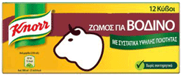 Η ιστορία της Knorr ξεκίνησε το 1838 όταν ο Γερμανός γιός δασκάλου Carl Heinrich Knorr, που είχε αρχίσει τη σταδιοδρομία του ως χονδρέμπορος αγροτικών προϊόντων, δημιούργησε με τη βοήθεια της γυναίκας του ένα εργοστάσιο για την επεξεργασία αλεύρων. Ο Κλασσικός Κύβος Βοδινού Knorr ταιριάζει απόλυτα με μαγειρευτά πιάτα και σούπες. Περιέχει πλούσιο Ζωμό Βοδινού, λαχανικά και μυρωδικά όπως κρεμμύδι και μαϊντανό τα οποία χαρίζουν πλούσια γεύση και μυρωδιά. Αυτό που εξασφαλίζει την υψηλή ποιότητα του προϊόντος είναι ότι κατα την διαδικασία παραγωγής του δεν χρησιμοποιούνται χρωστικές ή συντηρητικά.