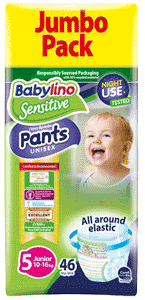Τα Babylino Pants χάρη στη τεχνολογία “all around elastic” έχουν ελαστικότητα περιμετρικά στη μέση και στα πόδια και αγκαλιάζουν το σώμα του μωρού σε κάθε κίνηση με την πάνα-βρακάκι σταθερή, χωρίς να «κρεμάει». Κάνουν την αλλαγή της πάνας εύκολη διαδικασία και το στάδιο εκμάθησης της τουαλέτας επίσης, αφού ανεβοκατεβαίνουν εύκολα σαν κανονικό εσώρουχο, χωρίς απαραίτητα το μωρό να είναι σταθερό και σε ύπτια θέση. Επιπλέον, χάρη στην καινοτομία Babylino Sensitive συνδυάζουν αποδεδειγμένα άριστη απορροφητικότητα αλλά και πιστοποιημένη φιλικότητα στο δέρμα ενώ διαθέτουν πιστοποίηση Oeko-Tex® Standard 100 για απουσία βλαβερών ουσιών που ενδέχεται να βλάψουν το δερμα του μωρού. Είναι κλινικά ελεγμένες με άριστα αποτελέσματα, μετά από έλεγχο 4 εβδομάδων σε βρέφη υπό την επίβλεψη δερματολόγων και παιδιάτρων στο Δερματολογικό εργαστήριο Dermatest (Γερμανία). Συνιστώνται από τον Σύλλογο Επιστημόνων Μαιών και Μαιευτών Αθήνας καθώς και από την Ελληνική Εταιρεία Παιδιατρικής Δερματολογίας. Η συσκευασία είναι από 100% ανακυκλώσιμα υλικά.